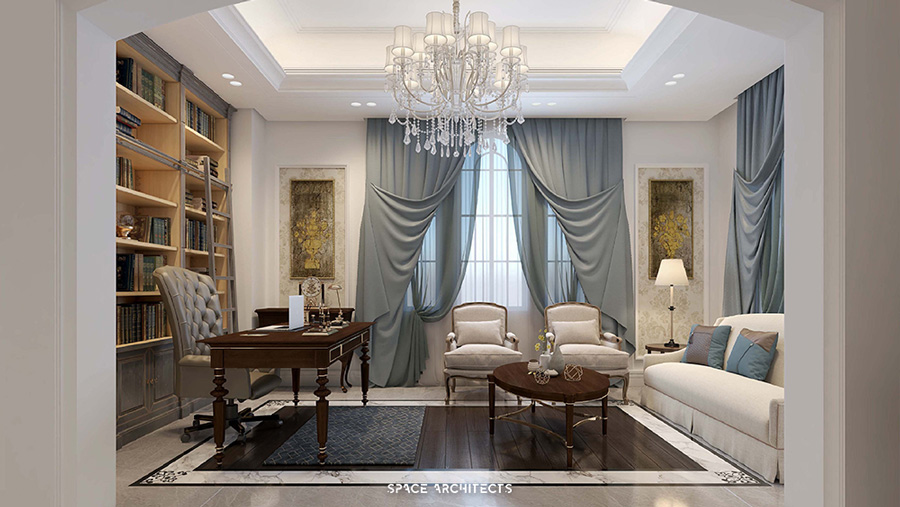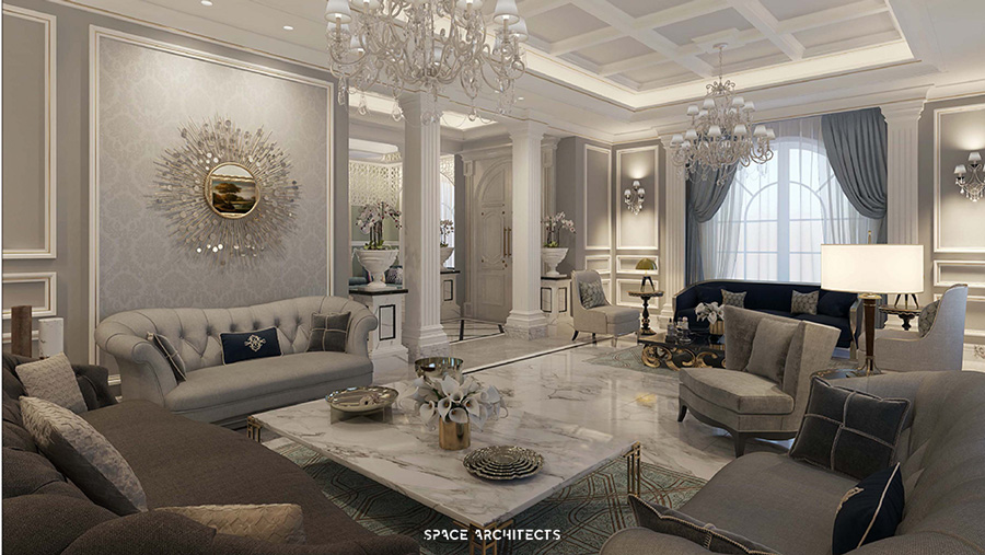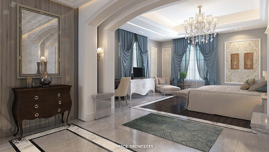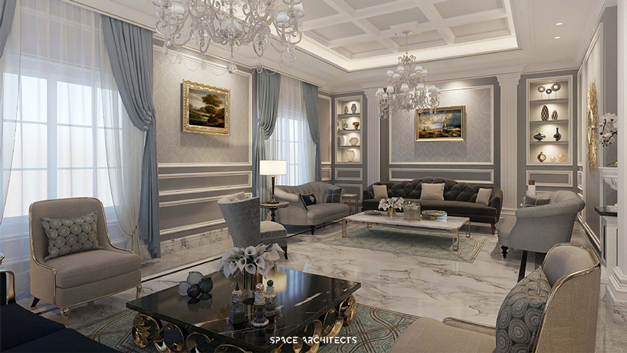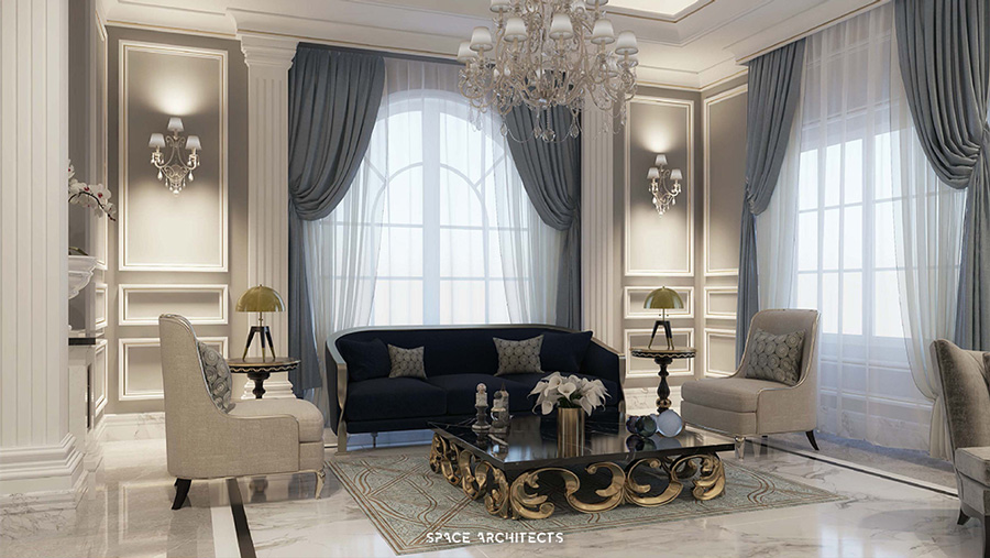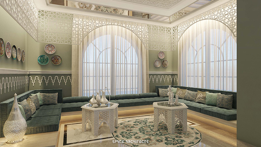 gentle lines, and a tranquil ambiance. Within this aesthetic, there is the notable inclusion of a masculine majlis,