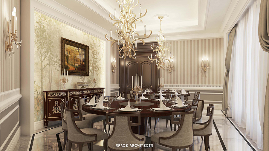 a well-appointed dining room, evoking French-inspired charm and grace.