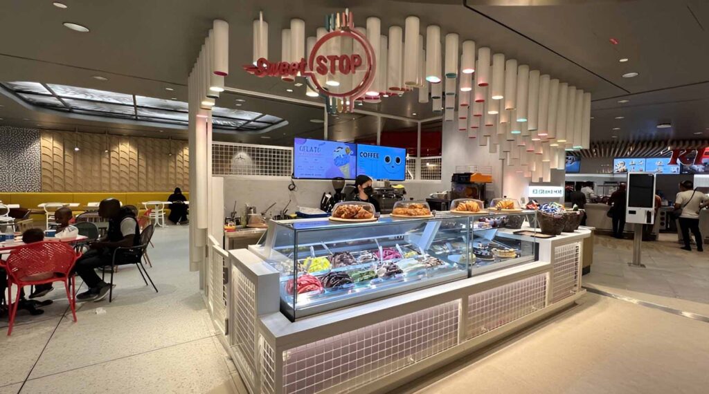 The projects included a diverse range of restaurants and stands, all featuring a selection of premium materials such as wood, glass, steel, powder-coated steel, and various types of marble and ceramic.