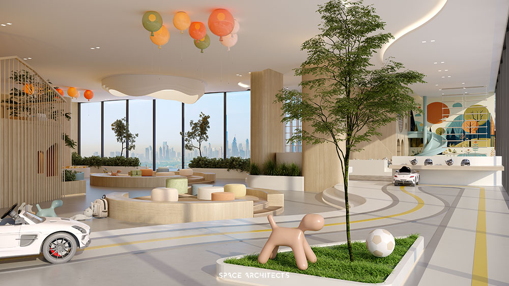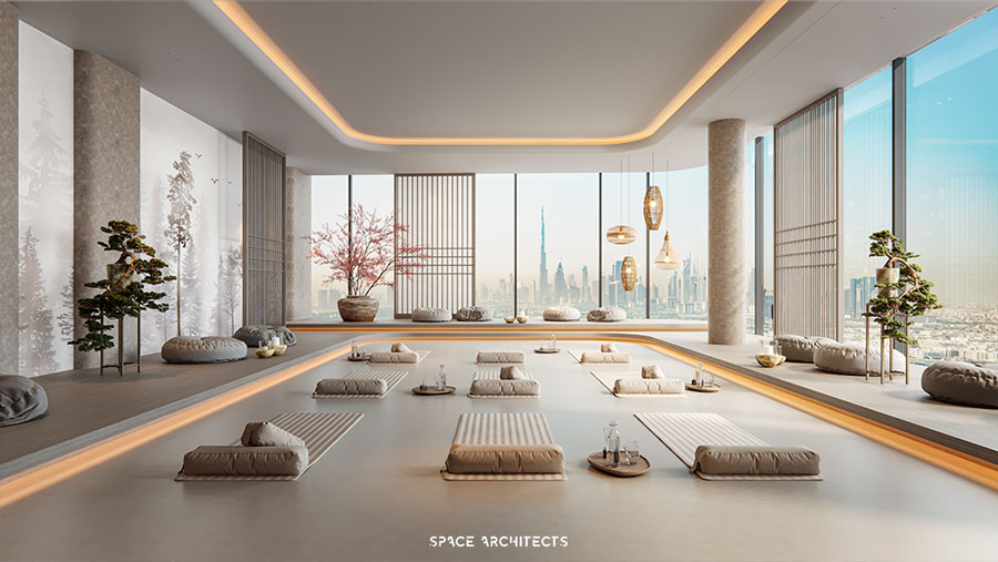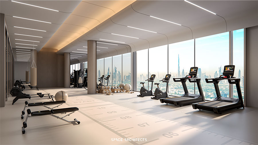 2-bedroom units, and stylish studios. In addition to luxurious interiors, the development provides an array of world-class amenities that cater to every need. These include a fully-equipped gym, a dedicated kids’ area, a media center, and tranquil meditation spaces. The project also features a podium with a swimming pool, along with 500 meters of rubber and stone grounding running tracks, allowing residents to reconnect with nature. Residents can also enjoy outdoor activities with a padel court and a serene rooftop meditation area, all designed to offer both relaxation and active living within an urban oasis.