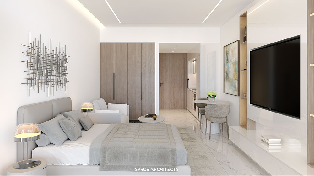 Designed for contemporary living, the residential units offer a variety of options, including spacious 1-bedroom apartments,