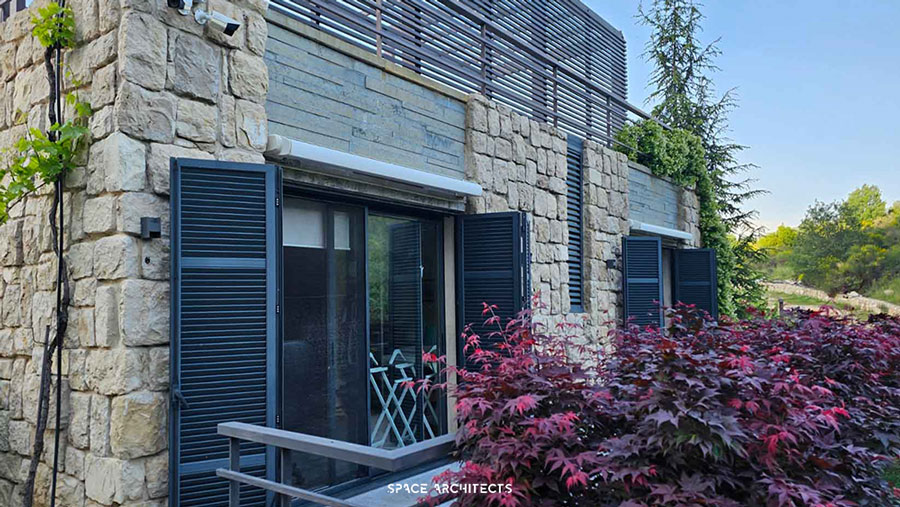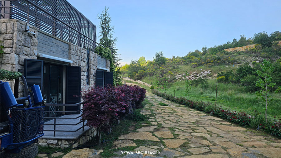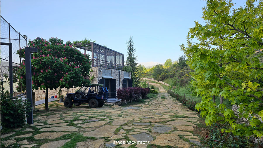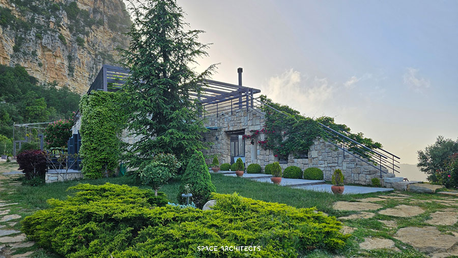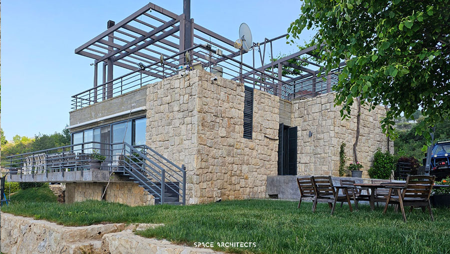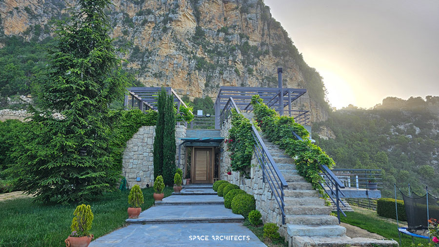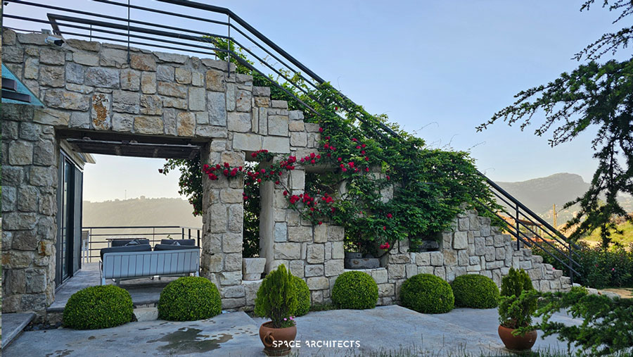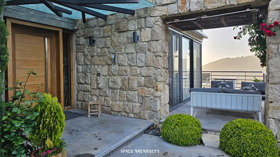 What’s truly unique is that the house is built from the very rock beneath it. The stairs leading to the terrace mimic the sacred hills of Mazraat Bani Saab, giving you the sensation of climbing a mountain as you ascend.