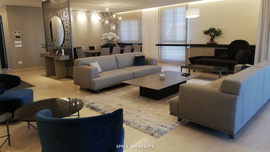 Presenting the exquisite design of a duplex apartment, adorned in modern aesthetics harmonizing with a neutral palette, accented by subtle hints of vibrant hues. The infusion of Italian branded furniture bestows an aura of sophistication and luxury, elevating the space to an epitome of elegance.